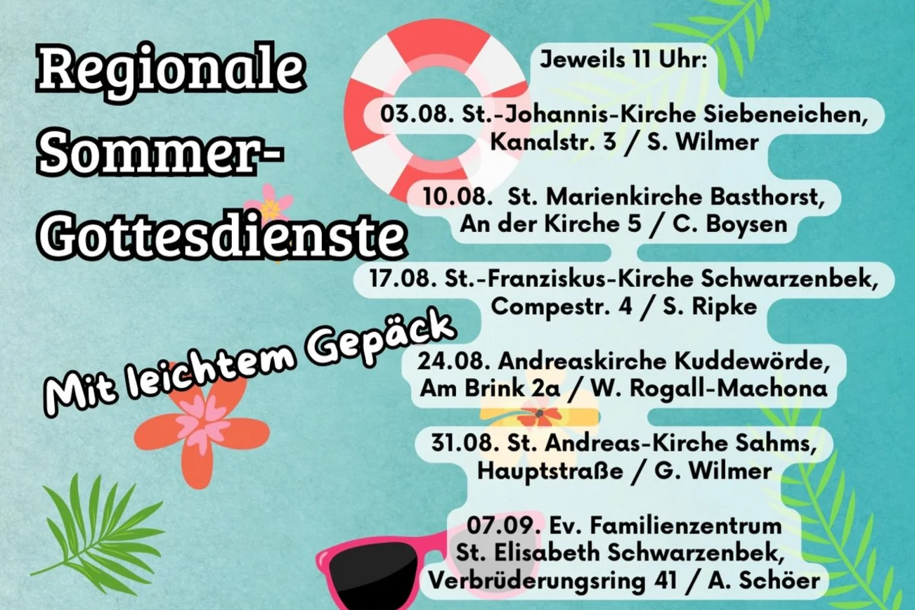 Regionale Gottesdienste im Sommer - an verschiedenen Orten - jeweils um 11 Uhr