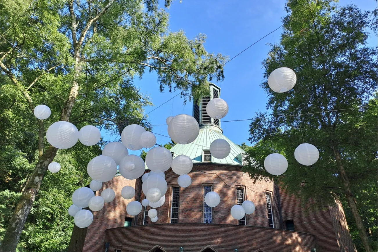 Viele waren gekommen, zum Mitsingen, zum Zuhören, zum Dabei sein. Es war eine große Freude für mich, diese gewachsene Aumühler Tradition zu übernehmen und weiter zu führen. Die wunderbaren schwedischen Sommerklänge, z. T. in Sätzen von Friedemann Schiebe. Das Miteinander von Alt und Jung, von Chormitgliedern und Zuhörern. Die mit einer Installation aus sommer-weißen Ballons, Blumen und bunten Bändern geschmückte Kirchenwiese. Freundliche Gespräche, leckerer Kuchen und andere Köstlichkeiten. Und all das unter schönstem Sommerhimmelblau. Mehr ging nicht. Dank allen, die zum Gelingen beigetragen haben.
