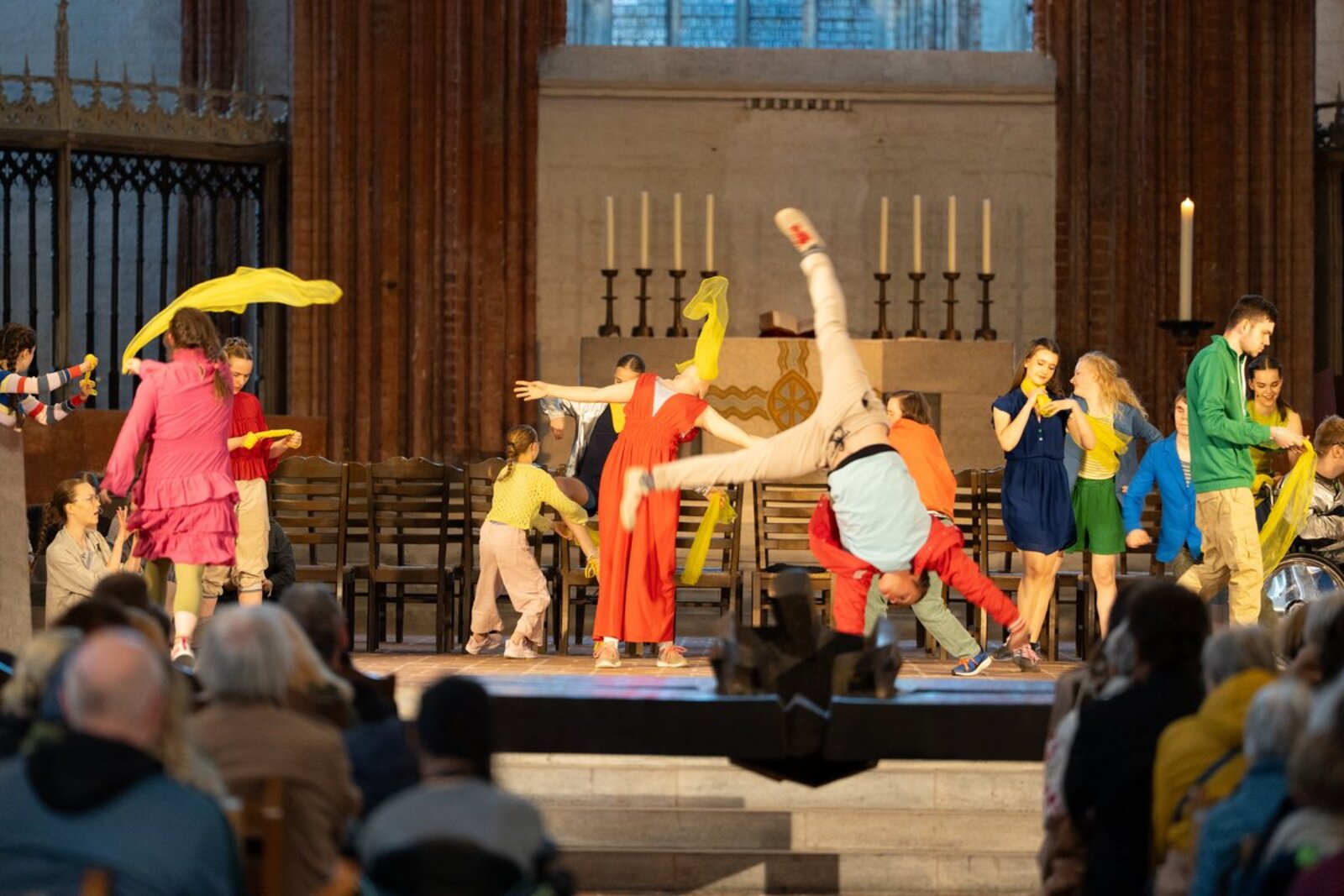 Das inklusive Musik- und Tanzprojekt “Human”, eine Kooperation zwischen der Musik- und Kunstschule Lübeck, Mixed Pickles, dem Theater Lübeck und dem Jugendsinfonieorchester Lübeck auf Grundlage der HUMAN Suite von Helge Burggrabe, stellte ohne Worte das dar, worum nach Kriegsende wieder mühsam gerungen werden musste: Grundbedürfnisse, Freiheit, Gleichberechtigung und Schutz. Die Choreografie und Performance von Katja Grzam und Charlotte Baumgart füllte die Leerstellen, welche Sprache nicht erreichen konnte.