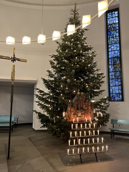 Jedes Jahr zu Weihnachten füllt er die Kirche mit besonderem Glanz – unser Weihnachtsbaum.
