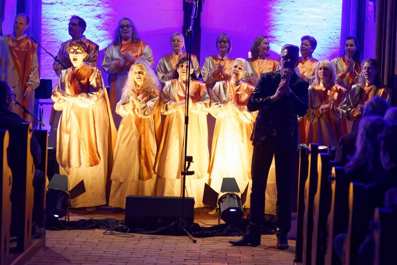 Die Musikhighlights sind diesmal: der stimmgewaltige und mit einer starken Bühnenpräsenz Volker Dymel und der Joyful Gospel Choir, die