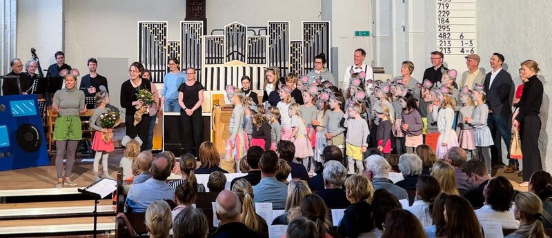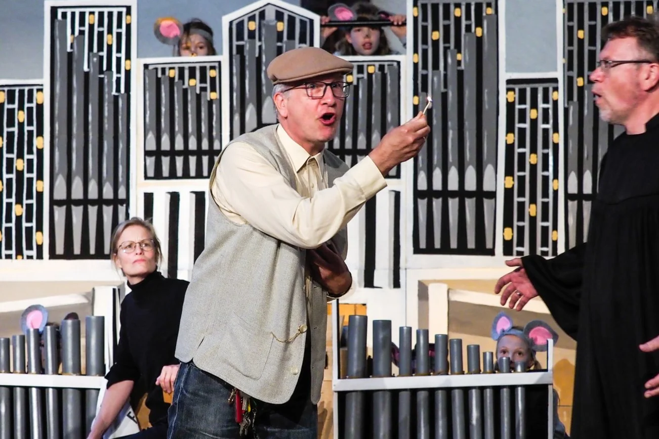 Von Pianist und Komponist Eric Mayr und seiner Frau Ursula (Text) anno 2004 kreiert, setzten unsere Kantorin Andrea Wiese und ihr Super-Team jetzt dieses Spektakel einfach mäusemässig genial unter das grosse Kreuz in unserem Altarraum und die Gänge um die Kirchenbänke herum. Handgemachte Mäuseohren trafen auf Riesenkäse und Superorgel, alles liebevoll kreiert. Herziger Gesang um Party, Essen, Freundschaft, mit bunter Lightshow. Ein Kirchengemeinderat wie im richtigen Leben. „Lobe den Herrn“ zum Mitsingen für alle. Selbst ein Deal fehlte nicht, hier der mit der Katze, die die Seiten wechselt. Und zum Schluss eine Vision: Die über 40 kleinen Mäuslein verlassen die Kirche und „werden schon was finden, das uns allen gut gefällt. Da wohnen wir so schön wie nirgends auf der Welt.“