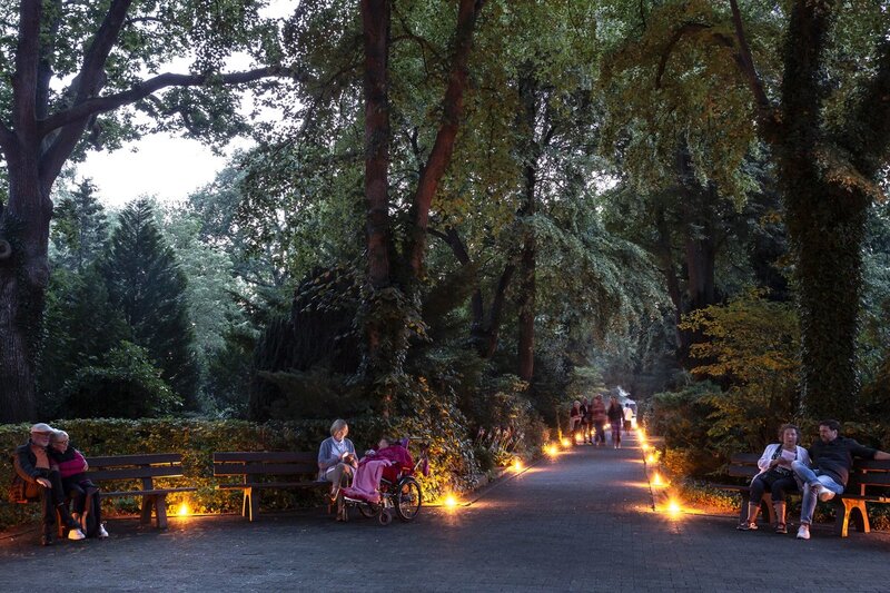 In den Abendstunden wiesen Kerzenpfade den Weg von Ort zu Ort und sorgten für eine ganz besonders intime Stimmung. "Es ist so schön, wie die Flöten- oder Gitarrenklänge über den Gräbern schweben - eine ganz besondere Atmosphäre", freute sich Pastorin Hilke Lage. "Das war wie ein Fest." Die besondere Stimmung habe dazu geführt, dass Menschen lachen und miteinander reden, und das an einem Ort, an dem sonst viel geschwiegen wird. Manche besuchten mit einem Glas Wein die Gräber von Freunden oder Familienangehörigen.