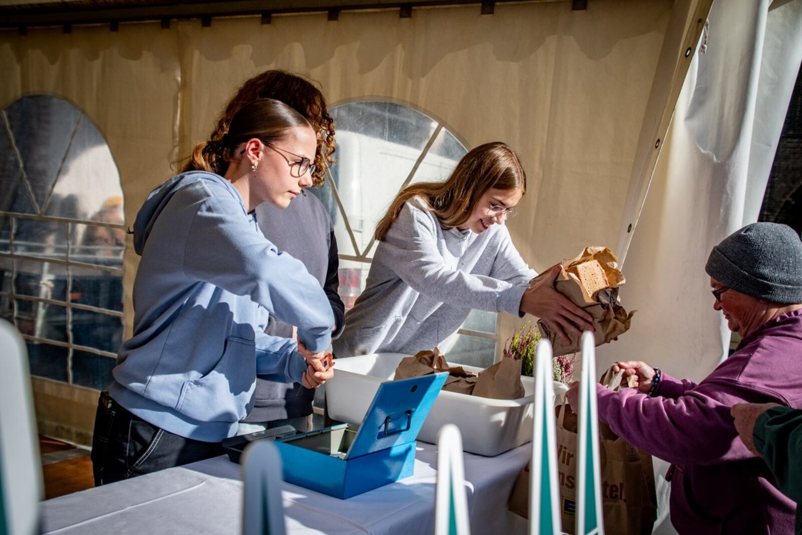 Wie in den vergangenen Jahren konnten die Besuchenden auch in diesem Jahr ein Erntedankfest-Brot erwerben: Diesmal waren es frische Sauerteig-Laibe, gesponsert von dem Lübecker Bäckermeister Alexander Cochius, der Ende 2024 in der Wahmstraße seine Sauerteig-Manufaktur “Kurt und Willi” eröffnen wird. Der Erlös der Aktion in Höhe von 700 Euro kommt dem “Brot für die Welt”-Kampagne “5000 Brote” zu Gute kommen, mit dem Projekte für Kinder und Jugendliche in aller Welt unterstützt werden sollen. Mit dem Geld aus Lübeck soll ein Bildungsprojekt in den Armenvierteln von Asunción in Paraguay unterstützt werden. In Malawi (Afrika) soll ein Ernährungsprojekt für Familien unterstützt werden. Schließlich soll in Vietnam ein Entwicklungsprogramm gefördert werden, berichteten Kofirmand:innen.
