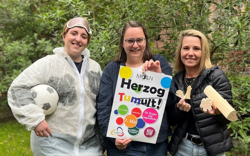 Katharina Schneider und Vanessa Pauls vom Jugendpfarramt und Jugenddiakonin Svenja Leppin sind bestens vorbereitet und voller Vorfreude auf den mittlerweile dritten HerzogTumult, der am Sonntag, den 7. Mai 2023, von 11 bis 17 Uhr im Möllner Kurpark stattfindet - veranstaltet von der Stadt und dem Kreisjugendring Herzogtum Lauenburg. Ein Fest für Kinder und Jugendliche soll dieser Tag sein. Aus diesem Anlass nutzen viele Jugendverbände und -vereine die Möglichkeit, sich und ihre Arbeit vorzustellen.