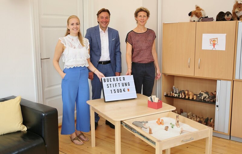Das Beratungsteam hatte sich mit dem Wunsch nach dem therapeutischen Sandtisch an die Stiftung gewandt und dort wurde die Initiative begrüßt. 1500 Euro gab es von der Stiftung für das Projekt. Damit konnte der Sandtisch nach den Wünschen und passend zur Größe des Raumes angefertigt werden. „Ich konnte anfangs mit dem Begriff ´Sandtisch´ wenig anfangen, bin jetzt aber von der Sinnhaftigkeit dieser Anschaffung überzeugt“, sagte Thomas Göthling beim Besuch der Beratungsstelle.