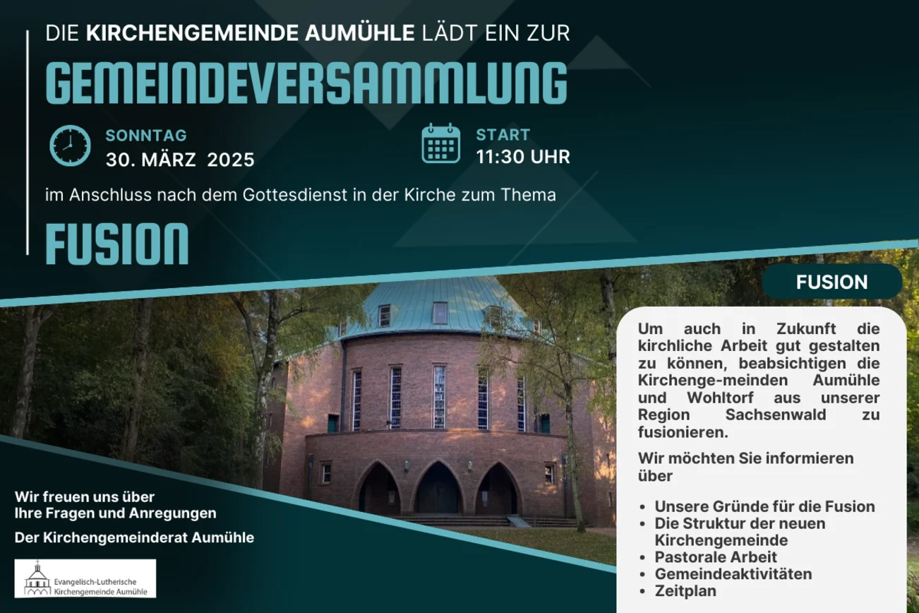 Um auch in Zukunft die kirchliche Arbeit gut gestalten zu können, beabsichtigen die Kirchengemeinden Aumühle und Wohltorf aus unserer Region Sachsenwald zu fusionieren.
