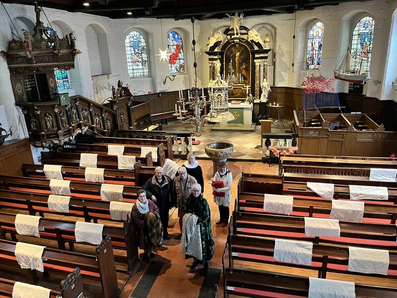 In St. Marien zu Lübeck wurden in der Vergangenheit die Winter-Gottesdienste ab dem Zweiten Weihnachtstag (außer Sivester) in der Briefkapelle gefeiert. „Leider ist die Briefkapelle dafür inzwischen aus Gründen des Bauerhalts nicht mehr geeignet. Sie braucht eine möglichst konstante Raumtemperatur und vor allem -feuchtigkeit, so dass die Nutzung der Bausubstanz schaden würde“, sagt Marienpastorin Inga Meißner. Deshalb wird nun im dritten Winter in der großen Kirche Gottesdienst gefeiert – zuerst wegen Corona, jetzt wegen der Briefkapelle. „Decken geben wir für die Gottesdienste wieder aus. Und wir ermutigen alle, auch selbst für Wärme zu sorgen und sich mitzubringen, was sie brauchen.