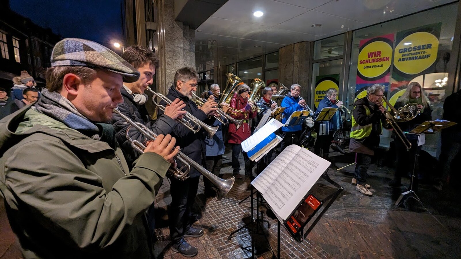 Im Anschluss an die kurzen Reden stimmt der Posaunenchor der Laurentius-Gemeinde das Lied „Shalom aleichem“ an. Mit dem Lied, das übersetzt „Frieden sei mit dir“ bedeutet, setzen sich die Teilnehmer:innen in Bewegung. Die Lichterprozession führt durch die Breite Straße und die Hüxstraße zur jüdischen Synagoge in der St.-Annen-Straße. Begleitet von der Lübecker Polizei singen die Menschen „Shalom aleichem“ bis zu ihrem Ziel. An der Synagoge stellen viele Menschen ihre Lichter ab.