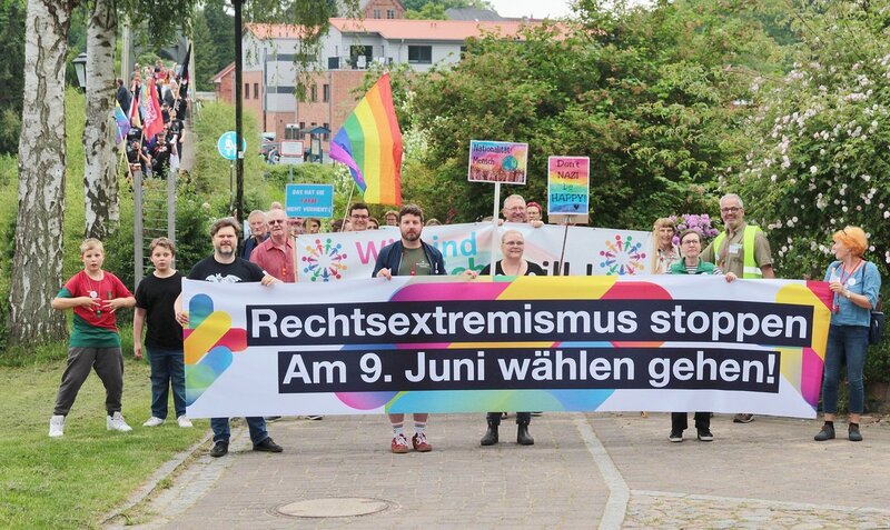 Dr. Wolfgang Runge, Pastor emeritus, war schon bei den vorausgegangenen Kundgebungen „Wir sind nicht still!“ engagiert dabei. Er appellierte, in den Dörfern keine Spaltungen und Menschenverachtungen zuzulassen. „Sachlichkeit und Einfühlungsvermögen sind unser Weg“, sagte er und erhielt starken Applaus. Zufrieden mit der Beteiligung an der Demonstration und der sich anschließenden Kundgebung, erläuterte Dr. Runge, dass aufgrund der anstehenden Wahl zum Europäischen Parlament am 9. Juni es den Veranstaltenden wichtig war, rechtzeitig vor der Wahl ein Zeichen zu setzen und sich nicht erst wieder am Reformationstag erneut zu den demokratischen Werten zu bekennen.
