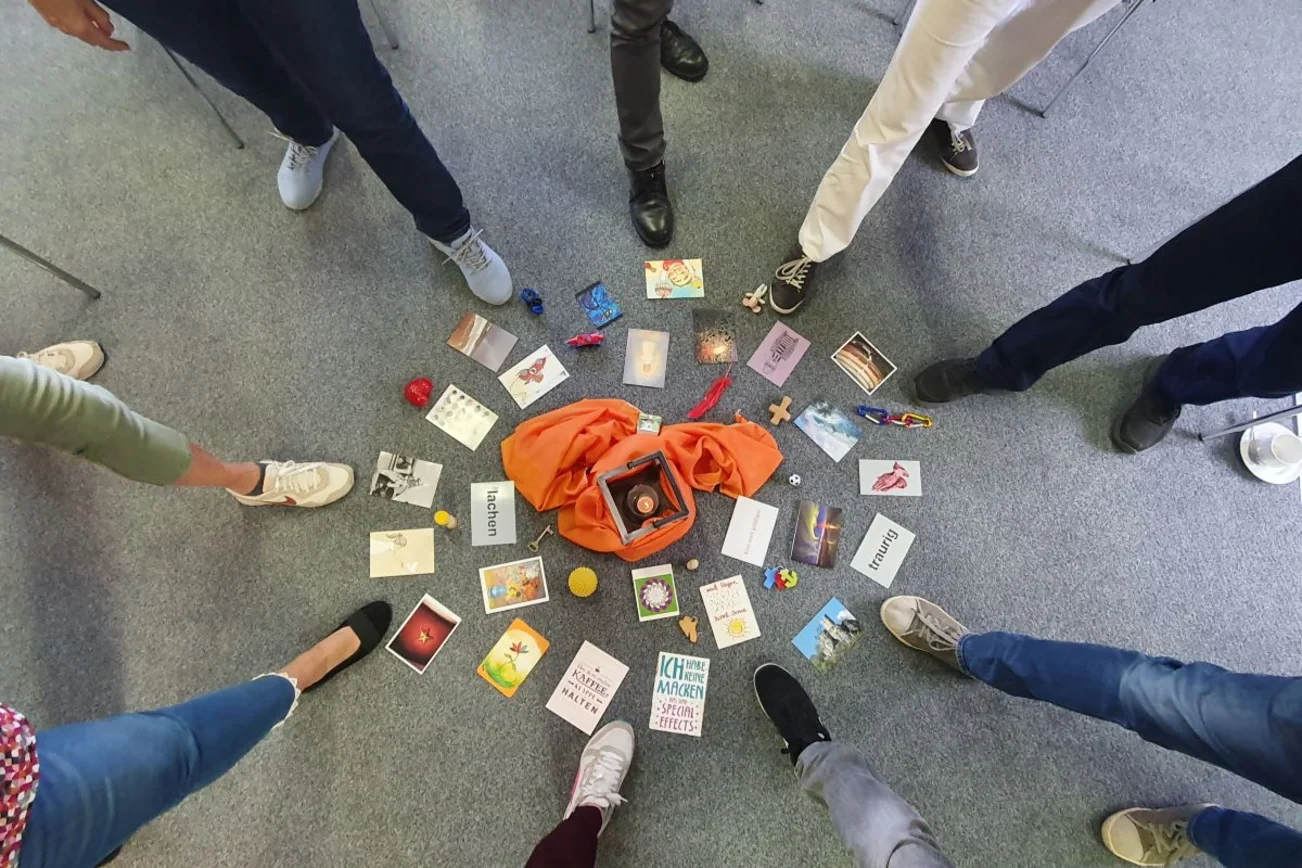 Ende Juni sind die Mitarbeitenden der Kirchengemeinde Aumühle zu einem Mitarbeitertag zusammengekommen. „Fröhliches Miteinander“, das war unser Motto. Das auch deshalb, weil es - insbesondere nach der langen Corona-Zeit - praktisch keine solches Miteinander mehr gab. Und es sind ja viele neue Gesichter zu uns gekommen. Deshalb war es höchste Zeit, sich endlich auch einmal außerhalb des beruflichen Kontextes zu begegnen. Das Augustinum Aumühle hat uns Obdach gewährt und köstlich verpflegt. Dank an dieser Stelle noch einmal für das herzliche Willkommen. Auf unserem Mitarbeitertag haben wir uns Gedanken gemacht: Wie soll unser Miteinander in der Kirchengemeinde Aumühle sein? Was treibt uns an? Und wie können wir alle miteinander den christlich-fröhlichen Geist bewahren? Karten und Symbole haben uns den Tag über begleitet und geholfen, unsere Gedanken und Gefühle in Worte zu fassen.