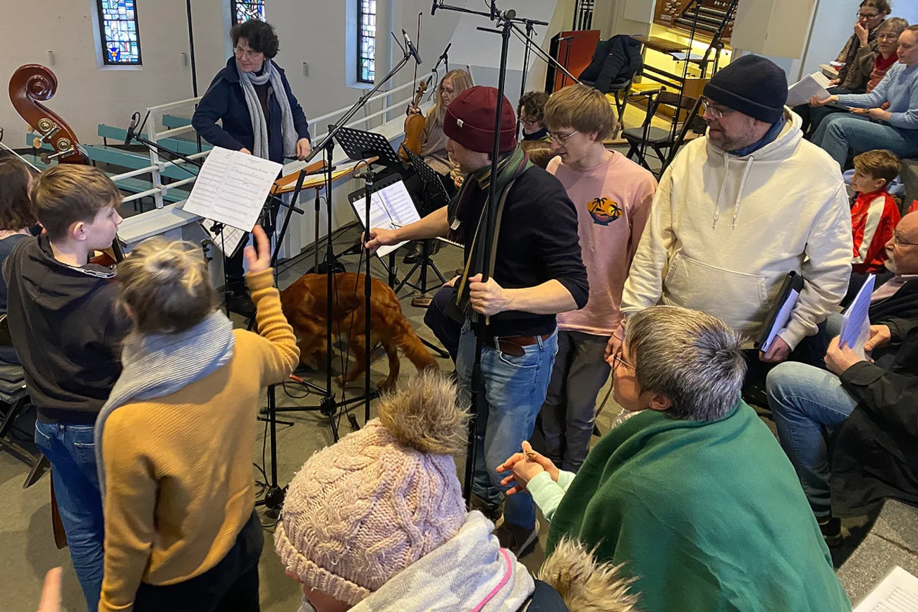 Das Besondere: Der Aumühler Musiker und Komponist Nathan Steinhagen (*1960) hat in den ersten Wochen dieses Jahres ein passendes Stück geschrieben. Die Kantorei der Kirchengemeinde Aumühle studierte sein Werk unter Leitung von Susanne Bornholdt in wenigen Proben ein. Anfang März versammelten sich Sängerinnen und Sänger unter winterlichen Bedingungen auf der Orgelempore, um die Musik in Begleitung eines Streicherensembles und weiterer Instrumentalisten zur Uraufführung zu bringen. Statt Zuhörern lauschten ihnen zahlreiche Mikrofone. Denn die Musik wird erstmals im Podcast in der Öffentlichkeit erklingen.