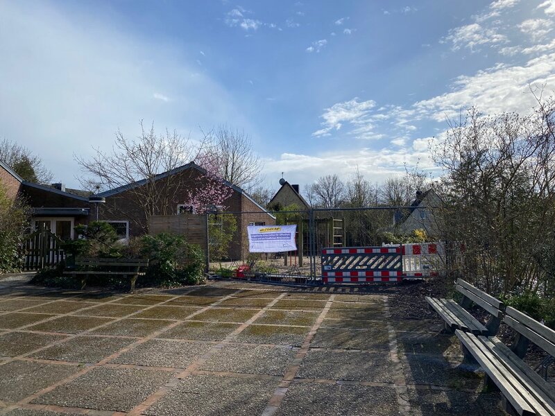 Zur Vorbereitung auf die Baumaßnahmen sind vor einigen Wochen vor der Vogelschutz-Zeit einige Bäume gefällt worden. Wenn die neue Kita fertig gestellt ist, werden die Freiflächen wieder mit Bäumen und Büschen bepflanzt.
