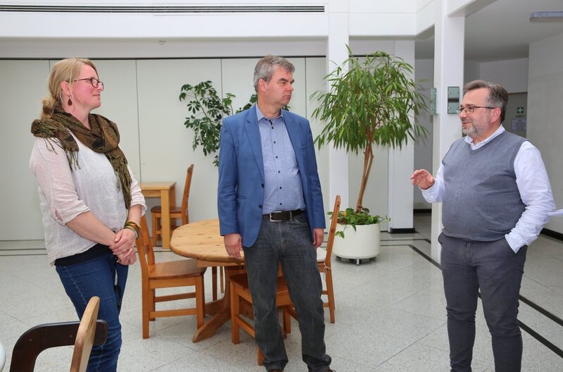 Begleitet wurde Brandt von Dr. Ulf Kassebaum, Geschäftsführer der Diakonie Herzogtum Lauenburg, und Möllns Bürgermeister Ingo Schäper. Die Diakonie stellt die soziale Betreuung für die Menschen, die hier aus den unterschiedlichsten Gründen ankommen, die Stadt Mölln ist Betreiber der Unterkunft in einem ehemaligen Bürogebäude, das ein Investor für diese Zwecke in kurzer Zeit aufwendig umbauen ließ.