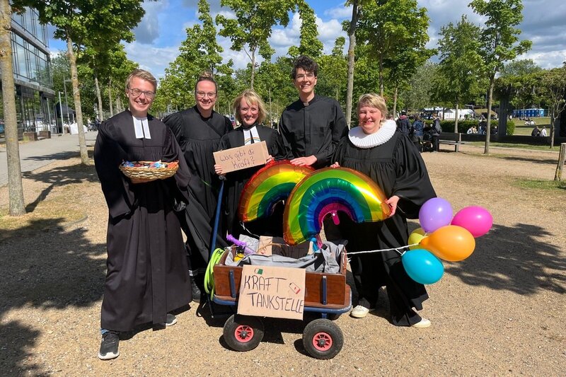 Neben Fincke und Gutjahr waren weitere Engagierte aus dem Kirchenkreis Lübeck-Lauenburg mit dabei: Pastorin Anne Mareike Müller von der Laurentius-Gemeinde, Vikar Juri Grascht von der Marli-Brandenbaum-Gemeinde und Vikar Michael Bertram von der Aegidien-Gemeinde. „Wir nehmen viele schöne Gespräche und Eindrücke mit und können uns gut vorstellen, mit unserer Pop Up Church alle zwei Jahre beim Campus Open Air dabei zu sein“, fasst Pastorin Fincke zusammen.