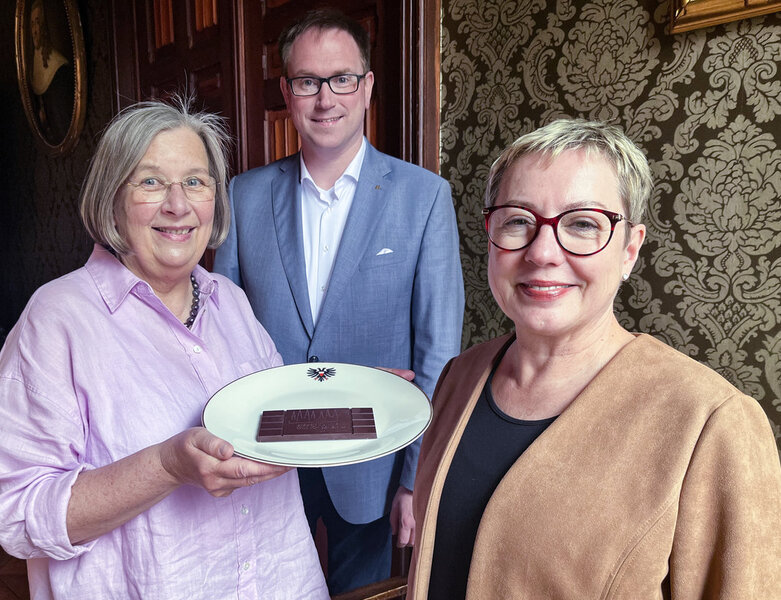 "Diese Schokolade ist etwas ganz Besonderes und Einzigartiges - genauso wie unsere sieben Türme", sagt Jan Lindenau und lobt das "tolle Engagement, das den Genuss und den den Erhalt unserer Stadtsilhouette fördert".