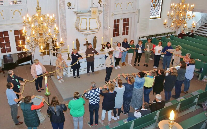 Dank einer kleinen Choreographie vor dem Altar durch die Kolleginnen und Kollegen aus Fachdienst und Kitas stand Susanne Wenck-Bauer noch einmal symbolisch im Mittelpunkt. Im Anschluss an den Gottesdienst wurde im Petri-Forum mit Grußworten und Geschenken weitergefeiert. Susanne Wenck-Bauer blickte auf ihr Berufsleben zurück: „Es war phasenweise sehr herausfordernd, aber immer sinnstiftend“.